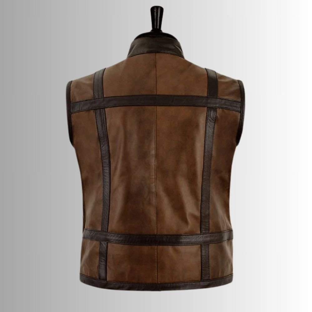 Ride in style and comfort with this Brown Leather Biker Vest. Crafted from genuine sheepskin leather, it’s designed for the modern rider who values both durability and fashion. The viscose lining adds a soft touch, ensuring comfort no matter how long the ride.