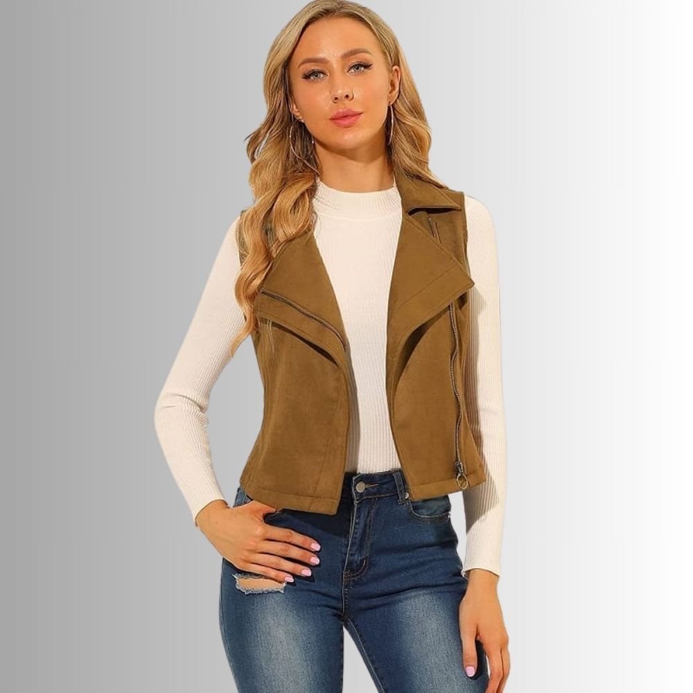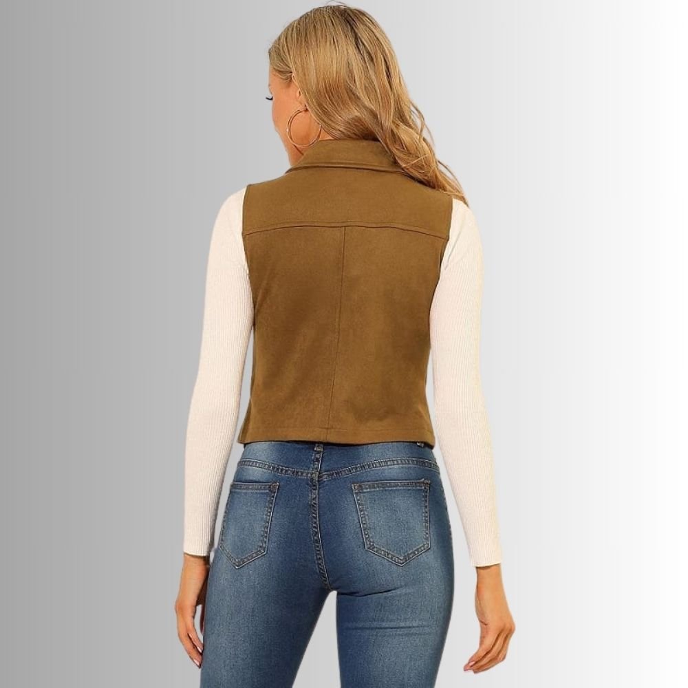 Add a touch of effortless elegance to your wardrobe with this Brown Suede Vest Womens. Crafted from soft, premium suede, this vest offers a sleek, chic look that’s perfect for layering. The rich brown tone pairs seamlessly with a variety of outfits, making it a versatile piece for any season. Whether worn over a cozy sweater for a laid-back look or styled with a dress for something more polished, this women’s suede vest is designed to bring understated style and comfort to your everyday attire.