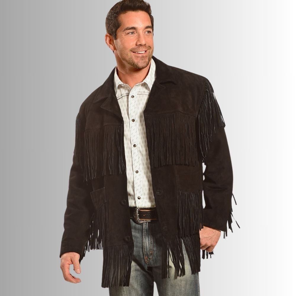 Add a bold, timeless touch to your wardrobe with our Men’s Suede Fringe Jacket, inspired by classic Western style. Crafted from premium suede leather, it features striking fringe details that bring movement and authenticity to every step. The smooth polyester lining ensures comfort, making it perfect for casual outings or special events.