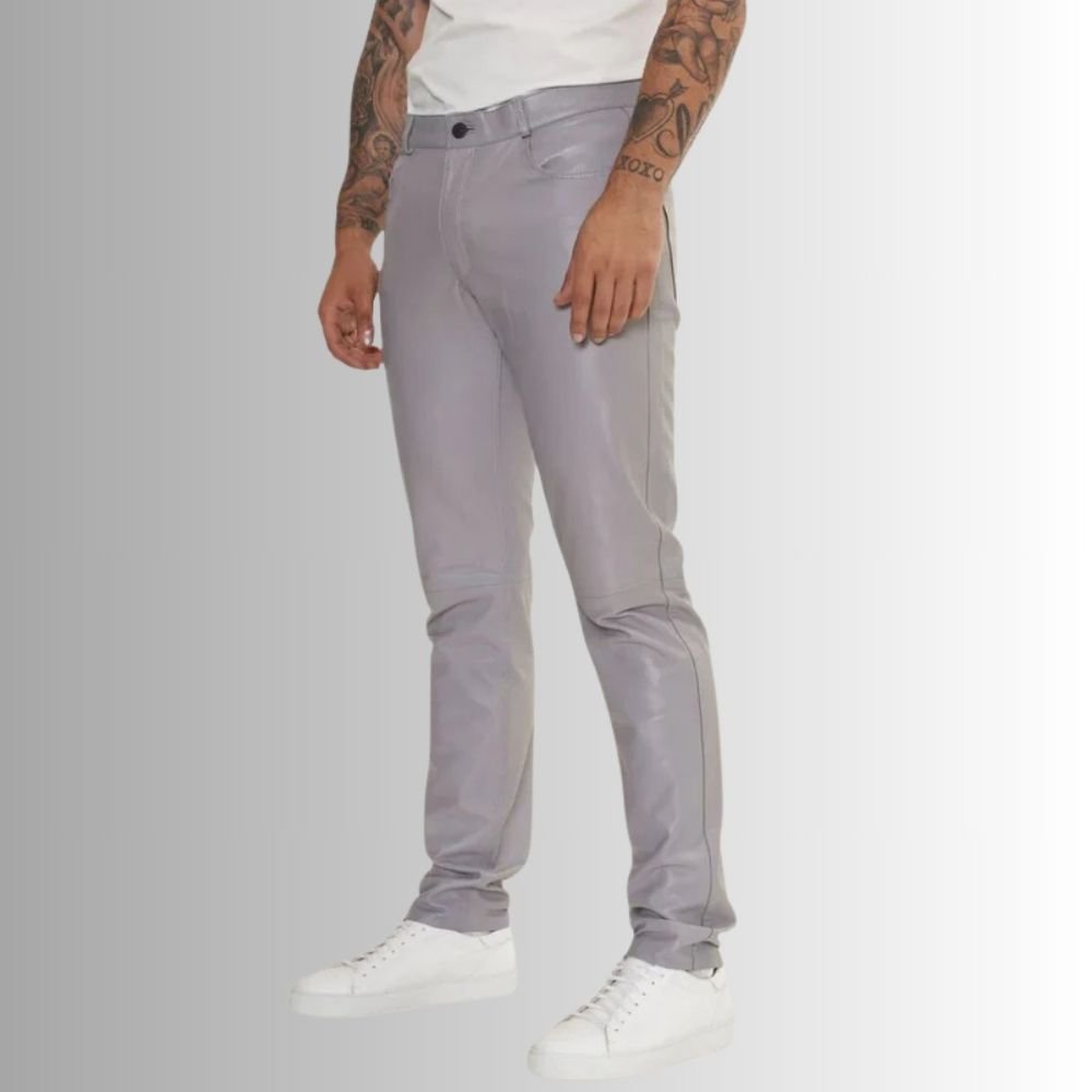 Grey Leather Pants for Men