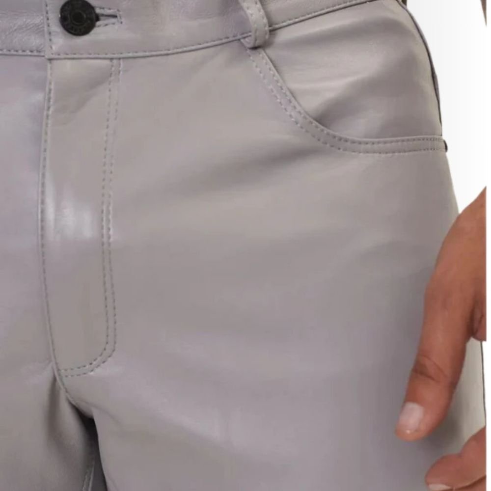 These Men’s Grey Leather Pants blend comfort and style, making them a must-have for any modern wardrobe.