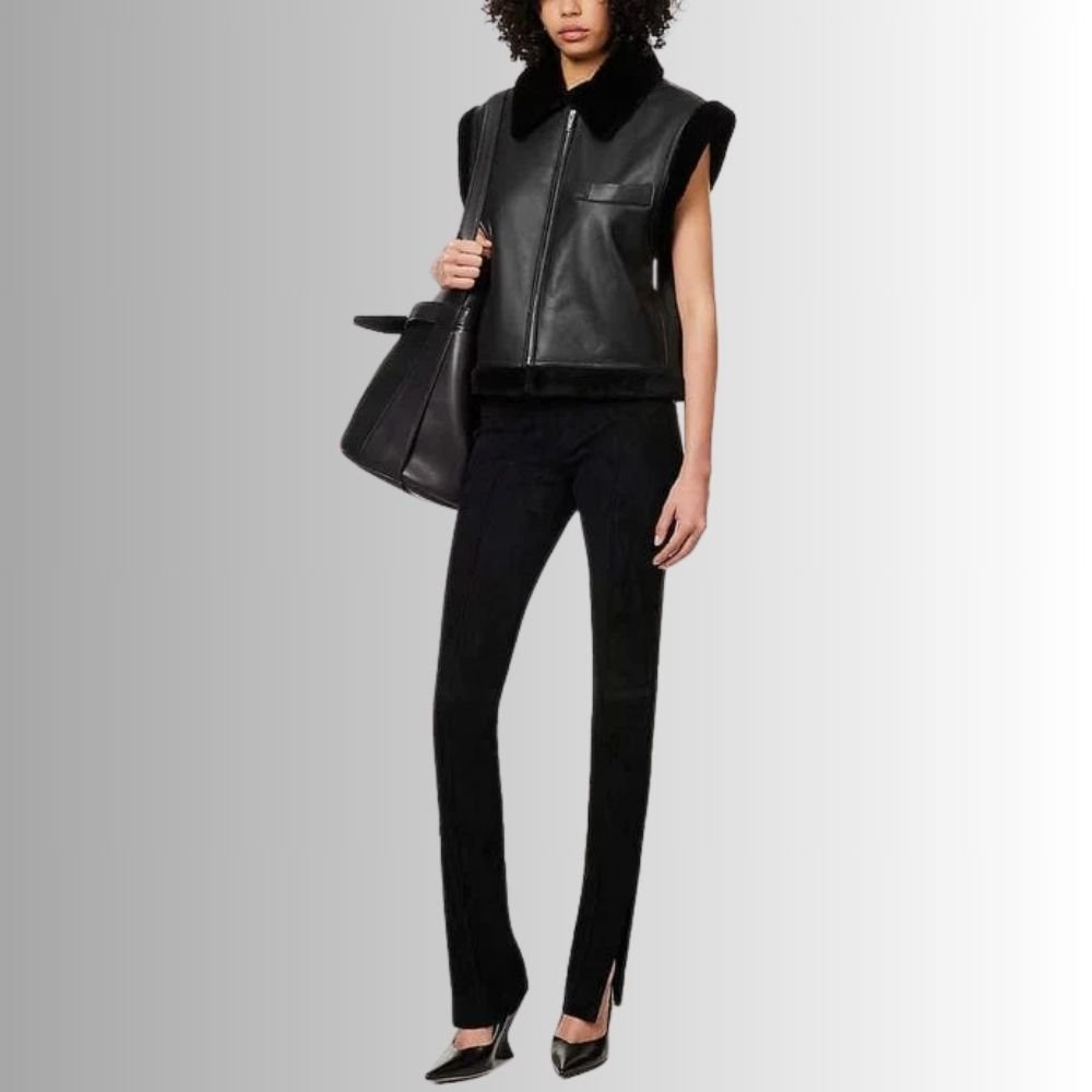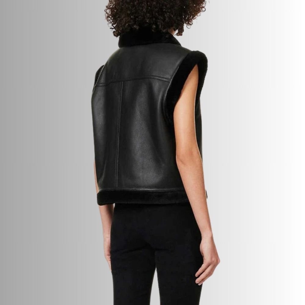 Elevate your style with the Women’s Black Biker Shearling Leather Vest – a perfect blend of edgy fashion and cozy comfort. Made from genuine sheepskin leather with a smooth semi-aniline finish, this vest is both durable and luxurious. The soft faux shearling lining adds warmth, making it a great layering piece for colder days. Featuring a sleek zip-up front, a turn-down collar, and a functional breast pocket, this versatile vest brings sophistication and biker-chic vibes to any outfit.