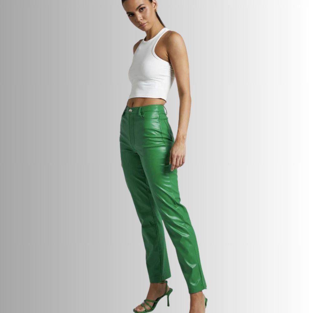 Step into bold elegance with our Women’s Green Leather Pants. Crafted from soft, premium leather, these pants combine comfort with a rich green shade that makes a statement. Perfect for casual days or dressy nights, they offer a flattering fit and effortless style. Pair them with your favorite top and shoes for a look that’s uniquely yours.